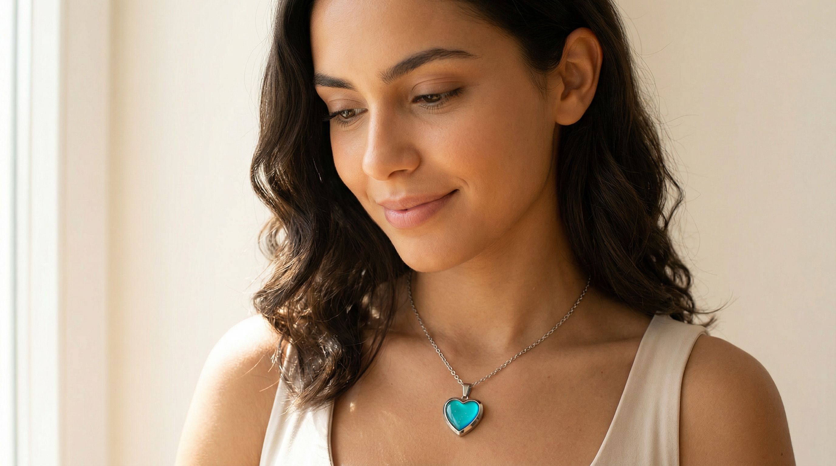 Já imaginou usar uma joia que reflete exatamente como te sentes? O Colar do Humor muda de cor automaticamente com a temperatura do teu corpo — revelando o teu estado emocional de forma única e especial. Sem botões. Sem aplicações. Apenas a magia da cor a contar a tua história.